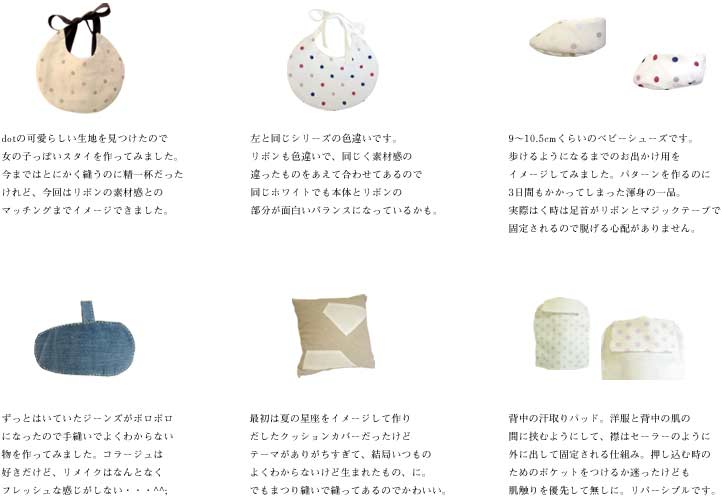 2013年7月、COD ROE BABY(コッド・ロウ・ベイビー)…と謳ったからには!とがむしゃらになっていて、最初にイメージしていた大切な感触や、赤ちゃんが喜んでくれそうな感覚を想像する余裕がなくなりそうになっていたので、ここ最近で一旦肩の力を抜いてみました。基本とオリジナリティを組み合わせて、かつ理想的に作る事の難しさを感じつつも夏っぽい素材で何品か出来上がりました。Wガーゼは自分自身も夏に好きな素材なのでガーゼケットとかバスローブとかも作ってみたいけれど、このペースだと出来上がる頃には秋になっていそうです。